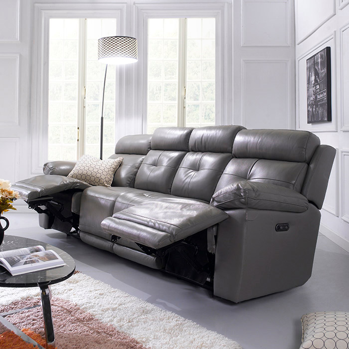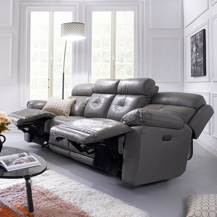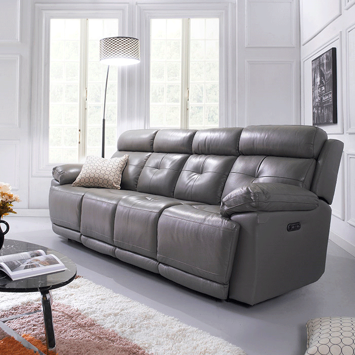 E1460-4S-GreyLeather Recliner Sofa