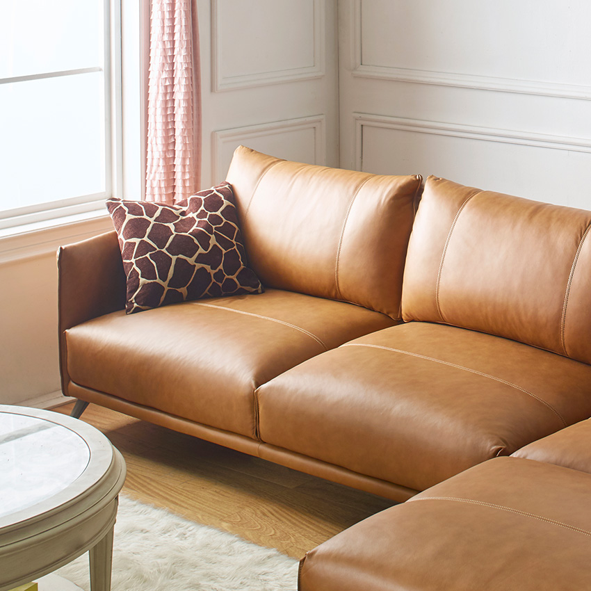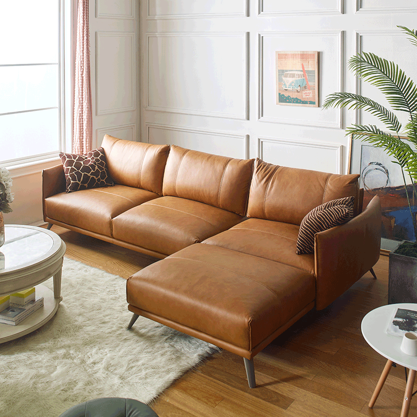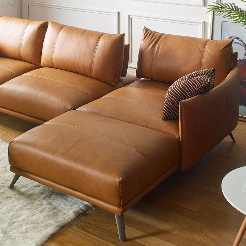 Futura USA 10452ML Tan-Chaise Leather Sofa​