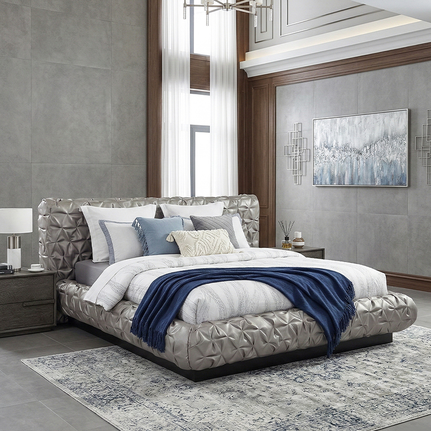 [ OUTLET ] Amalfi Silver Queen Upholstered Bed
