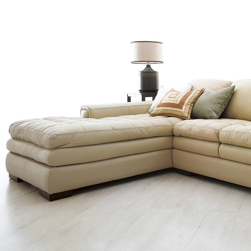 7491-Ivory Leather Chaise Sofa